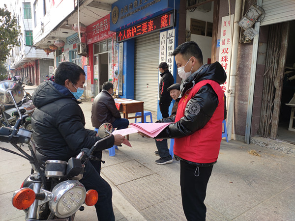 1月20日,古田县司法局凤都司法所工作人员前往凤都村、双珠村、洋头村开展“一起防疫”疫情防控志愿服务行动。