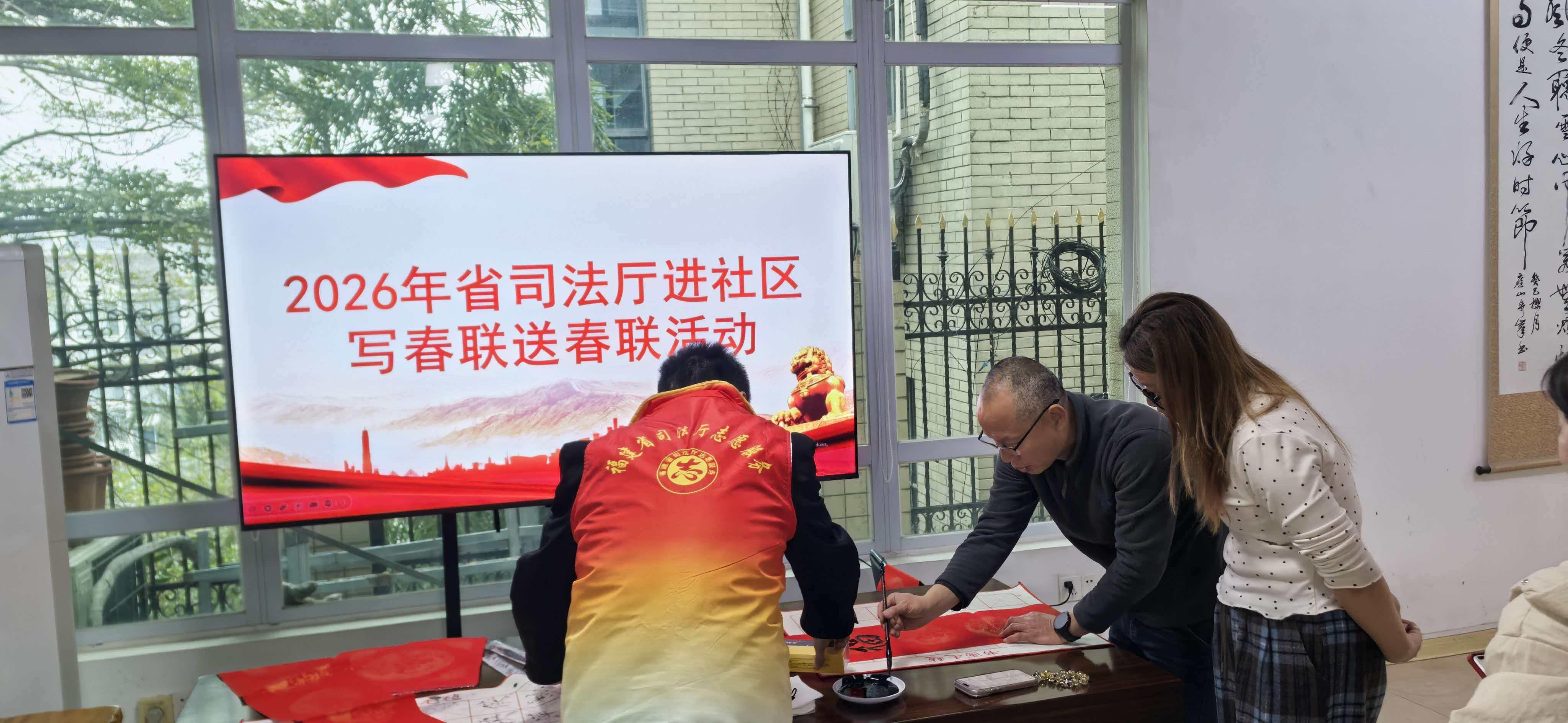 新春将至,年味渐浓。为弘扬中华优秀传统文化,传递党的关怀与温暖,福建省司法厅办公室党支部于2月6日开展“写春联·送温暖”主题党日活动,组织党员志愿者走进后县社区为居民写春联并慰问困难群众,开展“党员到社区报道为群众服务”暨文明实践社区共建活动,用实际行动践行初心使命,架起党群“连心桥”,为社区居民送上新春的关怀与祝福。