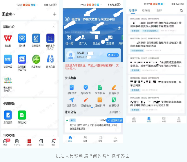 凭借对“闽执法”平台、“闽政通”、即时通讯工具的深度整合,形成了“执法端操作+群众端响应+即时化沟通” 的闭环体系。