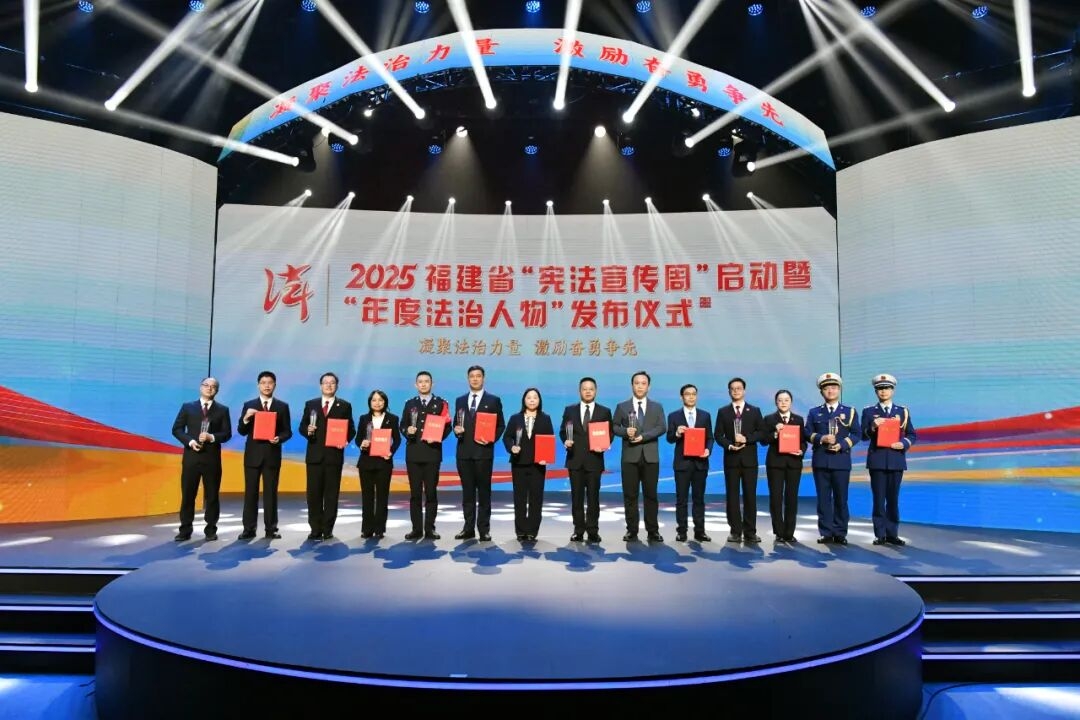 石好勇指出,宪法是治国安邦的总章程,是全面依法治国的根本依据,宪法宣传教育是法治建设的一项基础性工作。开展“年度法治人物”评选活动,对于弘扬宪法精神、讲好福建法治故事具有重要意义。要持续学思践悟习近平法治思想,深入贯彻落实党的二十届四中全会和中央全面依法治国工作会议精神,强化政治引领,坚持宪法确定的中国共产党领导地位不动摇,把党的领导贯彻落实到法治建设全过程和各方面。要围绕中心大局,以法治赋能新产业、新业态、新模式,全面推进各方面工作法治化。要坚持人民至上,更加注重保障和促进社会公平正义,努力让法治建设成果惠及全体人民。要加强普法宣传,认真贯彻实施法治宣传教育法,营造全社会崇尚法治、恪守规则、尊重契约、维护公正的良好环境。