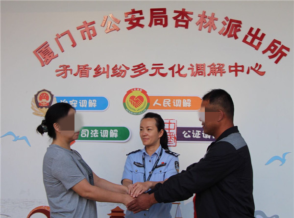 “在矛盾纠纷调解中,主要是公安机关行政调解、司法部门人民调解和人民法院司法调解三种形式。而在实践中,这三方各有独立的系统,难免存在信息壁垒,可能会对多元化调解造成衔接脱节的窘境。因此,在试点工作中,分局主动与鹭江公证处合作,研发三方衔接联动的信息化平台。”杏林派出所所长徐治介绍,通过该平台,经公证调解后的调解协议书,可以直接向法院申请司法确认;民警也可将收到的派警信息复制到平台授权的手机客户端,系统自动衔接到申请、制作协议书、告知书等环节,全部实现线上文书制作、流转。同时,该平台整合公安、司法、法院三家单位信息平台,共享调解数据,实现对矛盾纠纷的大数据分析。