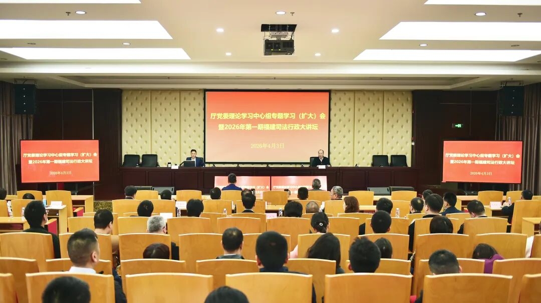 为深入学习贯彻习近平总书记关于加强全民国防教育的重要论述,加强新时代全民国防教育,进一步增强全系统干警国防观念、国家安全意识和保密意识,强化风险防范能力,4月3日,福建省司法厅党委举办中心组专题学习(扩大)会暨2026年第一期司法行政大讲堂,特别邀请了福建省军区原党委常委、战备建设局原局长王雷火同志,作《强化国防担当 共筑钢铁长城》专题辅导讲座。